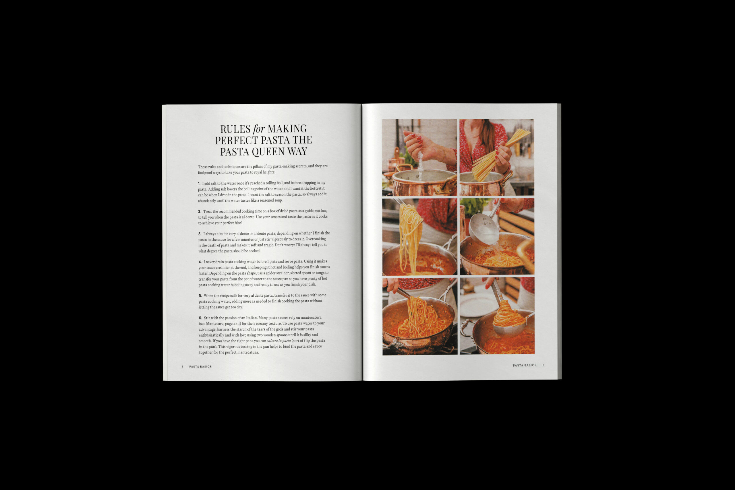 The Pasta Queen Cookbook. Jednak Nadia nie była z nich zadowolona – projekt w żaden sposób nie nawiązywał do włoskiego charakteru marki. Kolorystyka była agresywna, dominowała czerwień, a układ layoutu sprawiał wrażenie niespójnego.