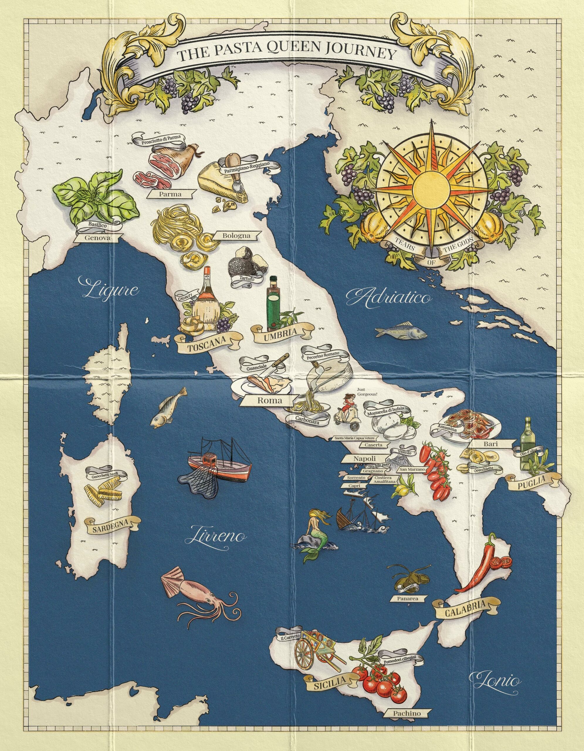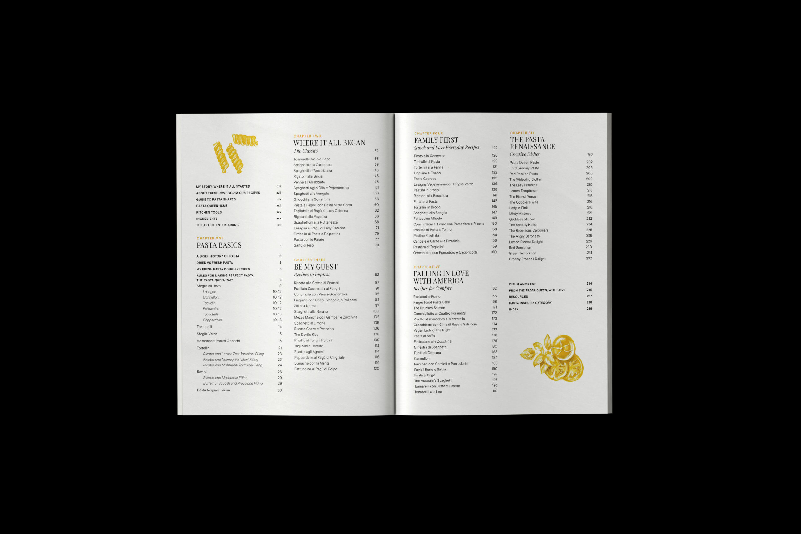 W ramach współpracy z „The Pasta Queen” zajęłam się projektem layoutu oraz ilustracjami do książki „The Pasta Queen Cookbook”, która trafiła na listy bestsellerów New York Times i Amazona. Ilustracje przygotowałam ręcznie – rysowane i malowane – tak, aby nawiązywały do klimatu tradycyjnych włoskich książek kucharskich i oddawały autentyczny charakter marki.